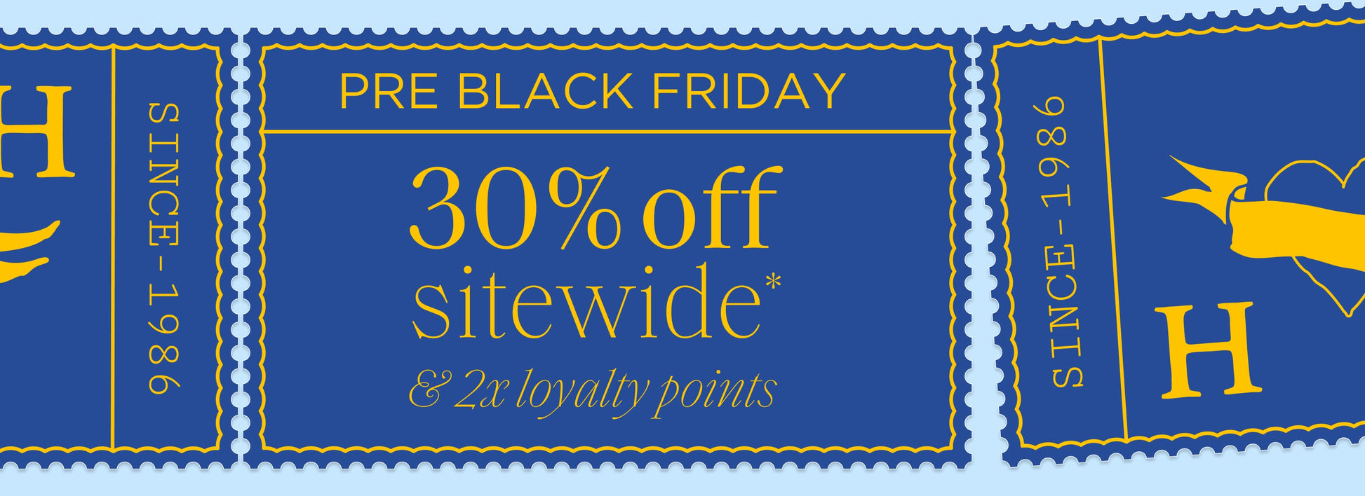 Limited-time offer of 30% off all Hatley and Little Blue House products online and in-store.