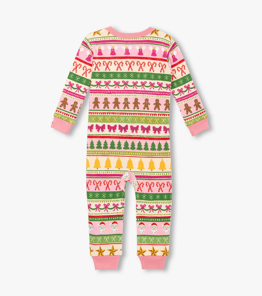 Baby Girls Pink Fun Fair Isle Cotton Sleeper
