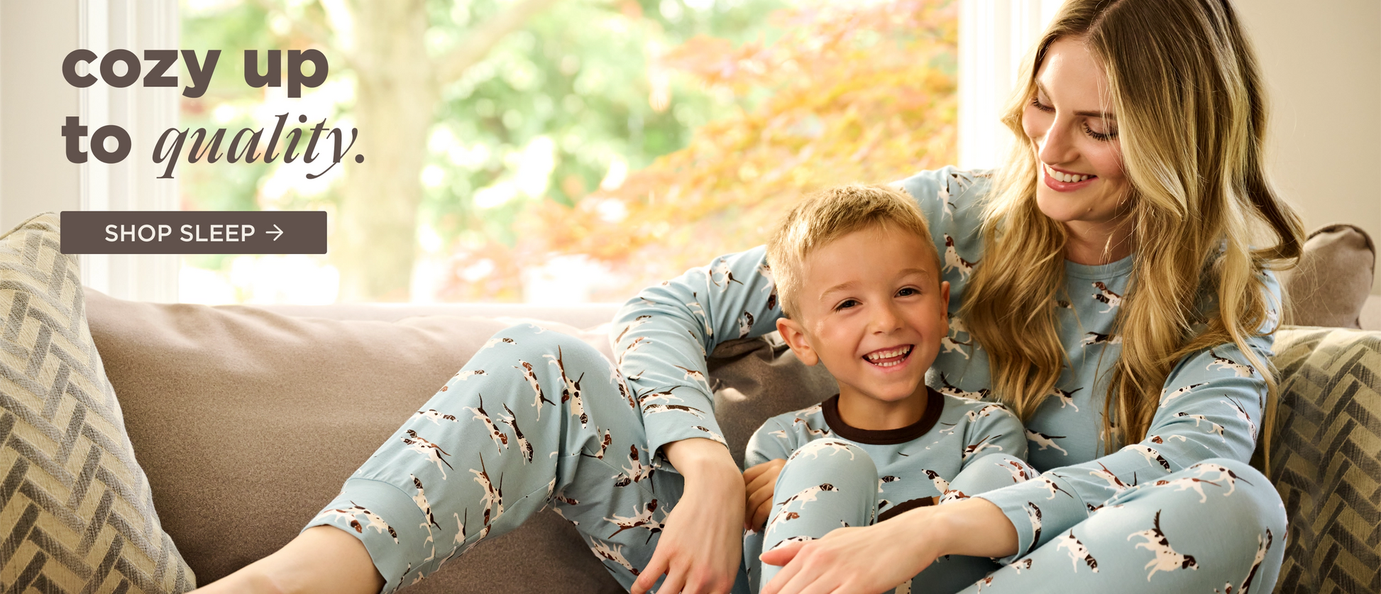 • Cotton pajama set featuring a duck decoy print on a cream background with green cuffs and neckline.