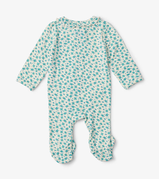 Watercolour Flowers Baby Ruffle Bum Footed Sleeper