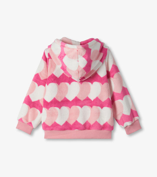 Girls Graphic Hearts Fleece Zip-Up Hoodie