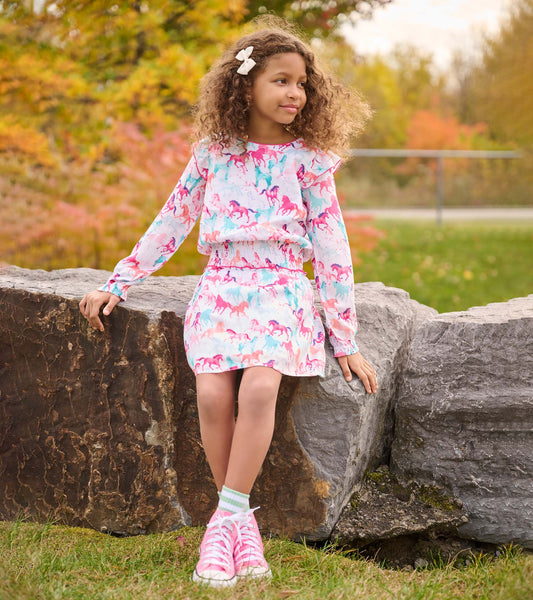 Girls Playful Camo Drop Waist T-Shirt Dress
