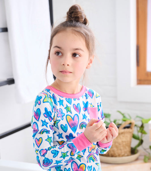 Girls Watercolour Doodles Bamboo Short Pajama Set