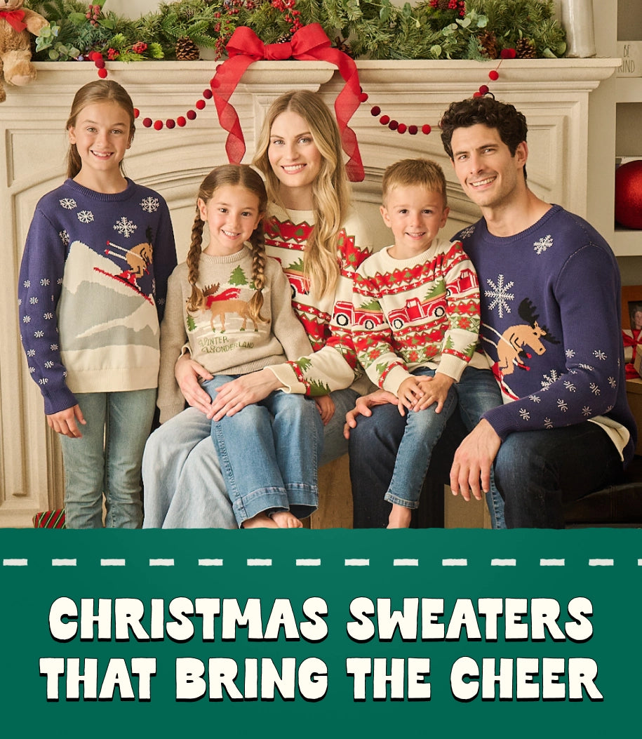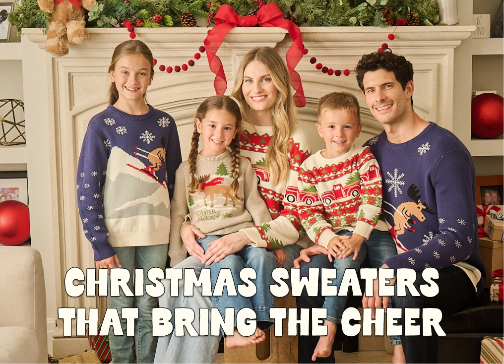 Kids Red Truck Hauling a Tree Holiday Sweater