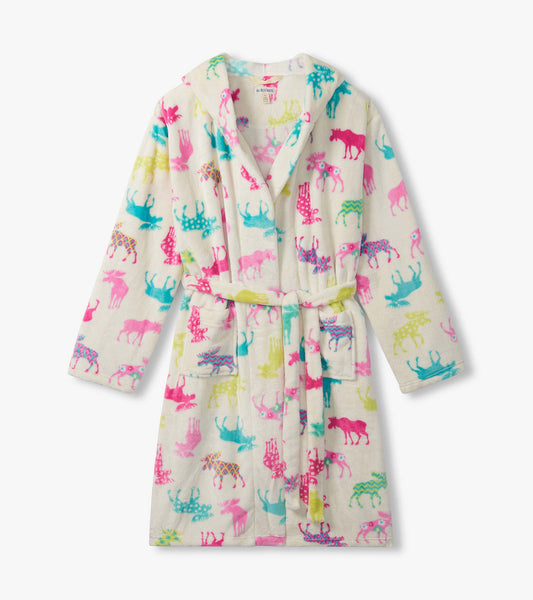 Women's Patterned Moose Fleece Robe
