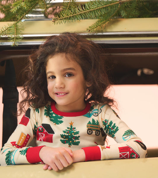 Kids Christmas Tree Farm Appliqué Pajama Set