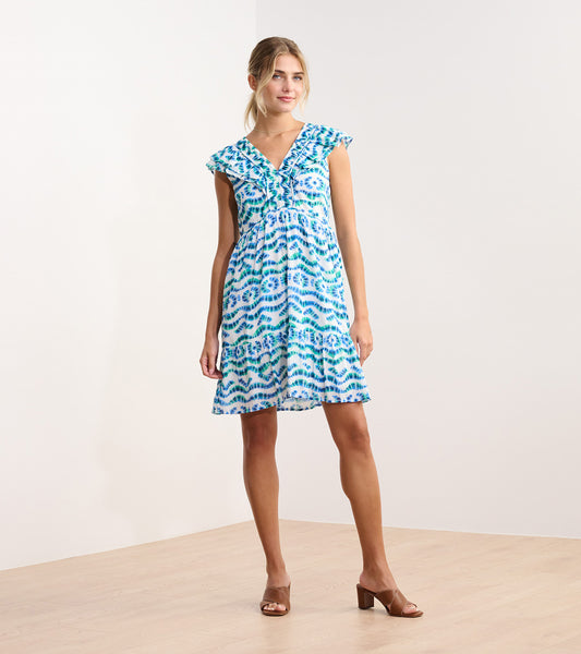 Zoe Ruffle Sleeve Dress - Shibori Waves