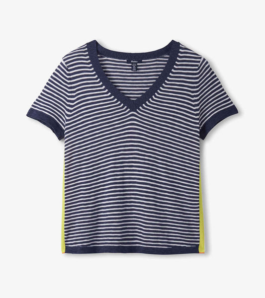 V-Neck Knit Tee - Patriot Blue Stripes