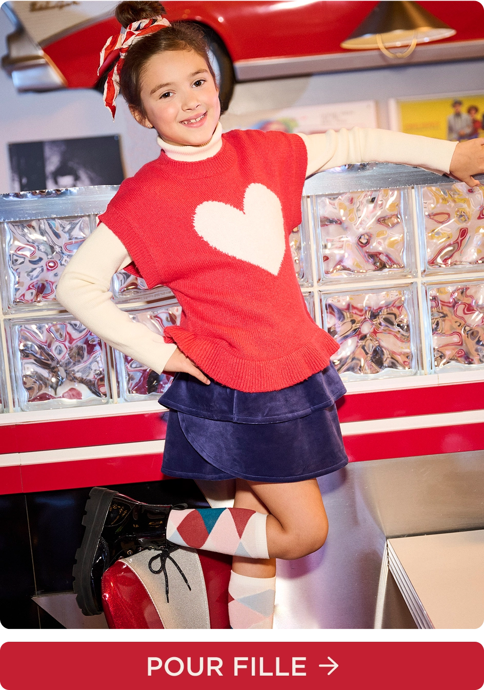 Tricot à col johnny pour fille – Blocs de couleurs royales