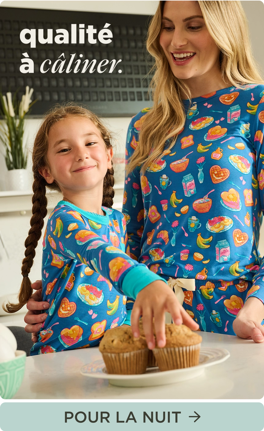 Pyjama en bambou pour fille – Motifs de déjeuner sur fond bleu