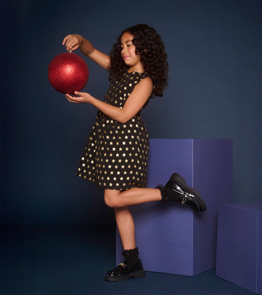 Pantalon évasé en velours – Vagues étincelantes sur noir