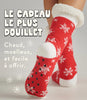 Chaussettes de chalet épaisses doublées en sherpa pour femme – Orignaux sur fond rouge