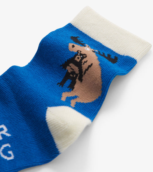 Chaussettes pour enfant – Orignal et son toutou ourson sur fond bleu