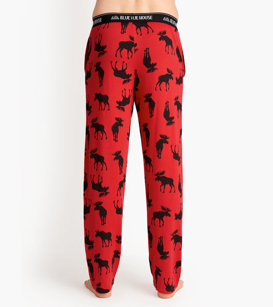 Pantalon de pyjama en jersey pour homme – Orignal sur fond rouge