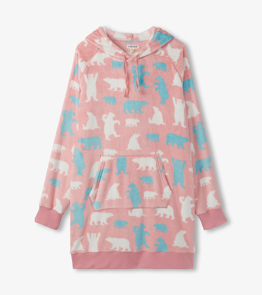Pull à capuchon en molleton très ample pour femme – Ours polaires sur fond rose