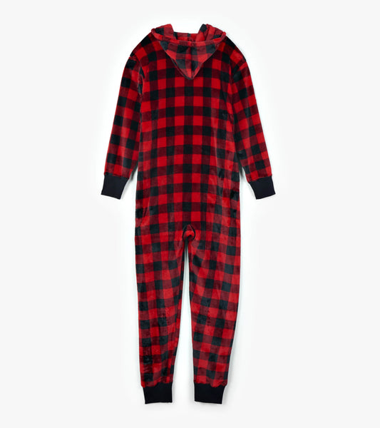 Combinaison de jour à capuchon en molleton pour adulte – Tartan rouge et noir