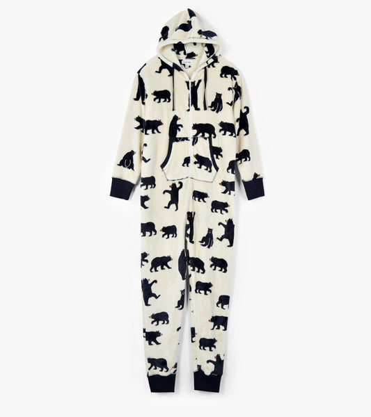 Combinaison de jour à capuchon en molleton pour adulte – Ours noirs
