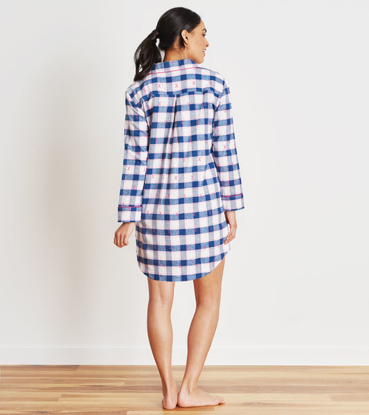 Robe de nuit en flanelle pour femme – Vacances de ski sur motif écossais