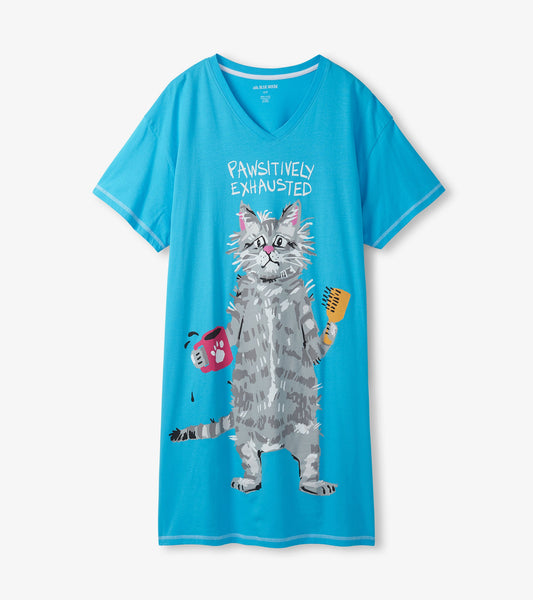 Chemise de nuit pour femme – Chat « pawsitively exhausted »
