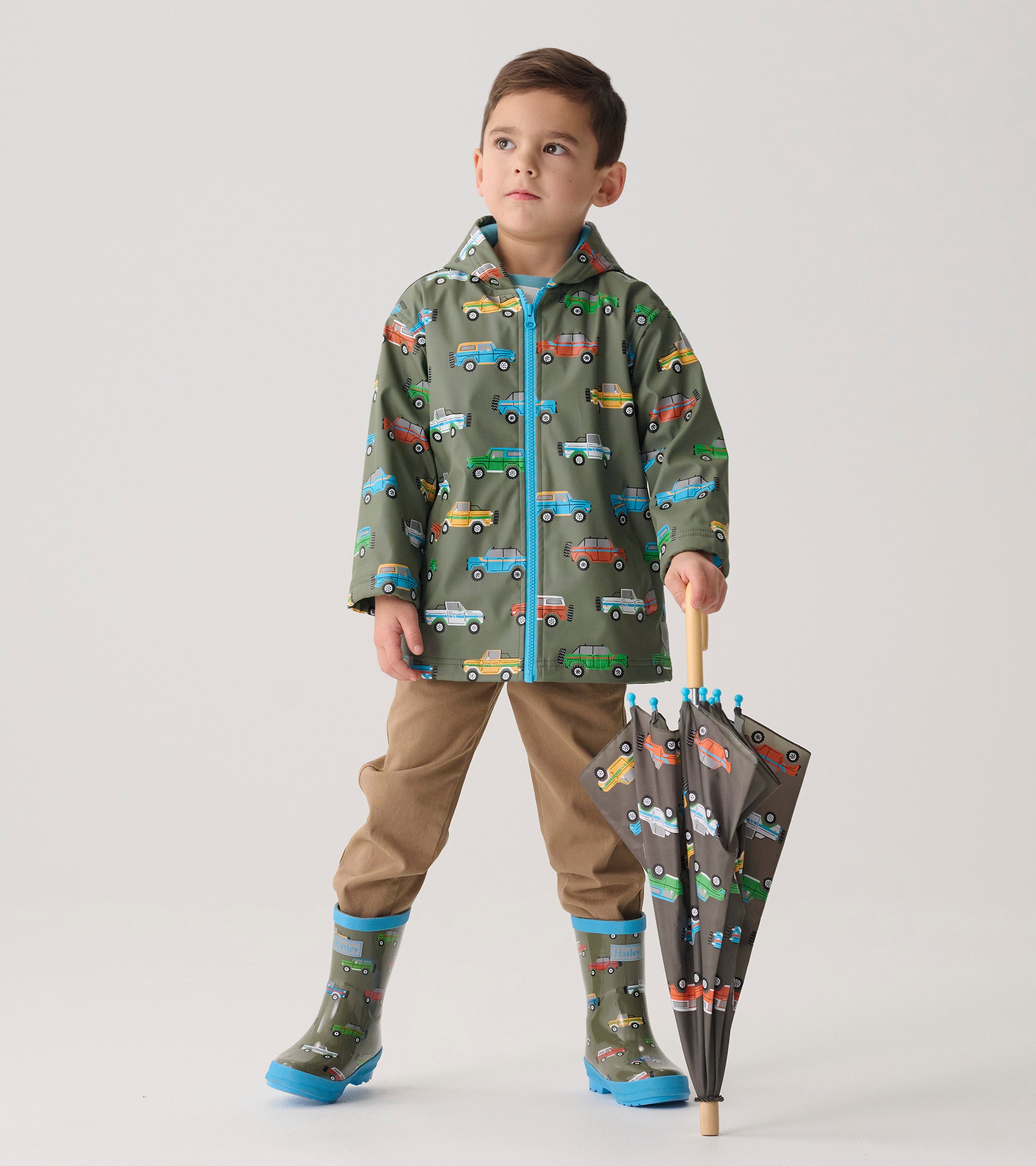 Plongez dans la joie de sauter dans les flaques d'eau avec notre vibrant kit de pluie pour enfants ! Choisissez et mélangez des imperméables, des pantalons de pluie, des bottes de pluie et des parapluies amusants, tous prêts à transformer ces journées d'automne pluvieuses en un festival d'éclaboussures avant-gardiste !