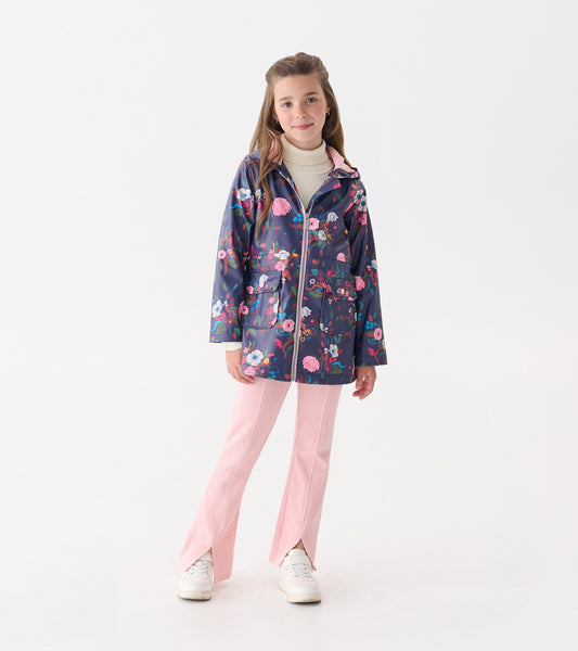 Veste de pluie à fermeture à glissière pour fille – Fleurs d’automne sur fond naturel