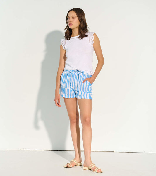 Pantalon à jambe large ceinturé – Rayures arc-en-ciel