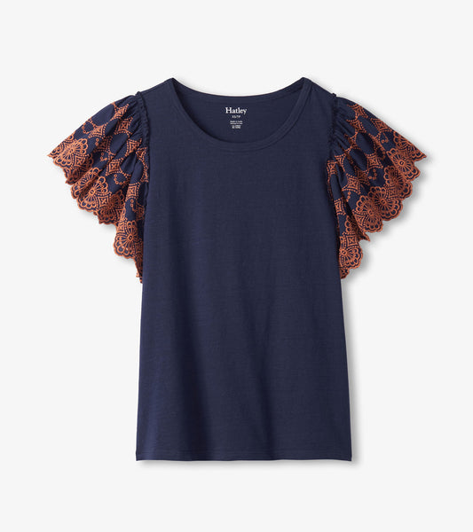 Débardeur à mancherons ornés d’œillets – Bleu patriote