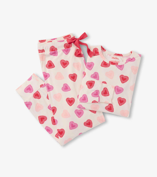 Pyjama en bambou pour femme – Emporte-pièce en forme de cœur sur fond naturel
