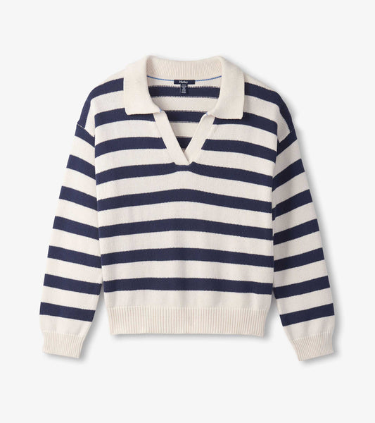 Tricot à col Johnny pour femme – Rayures nautiques