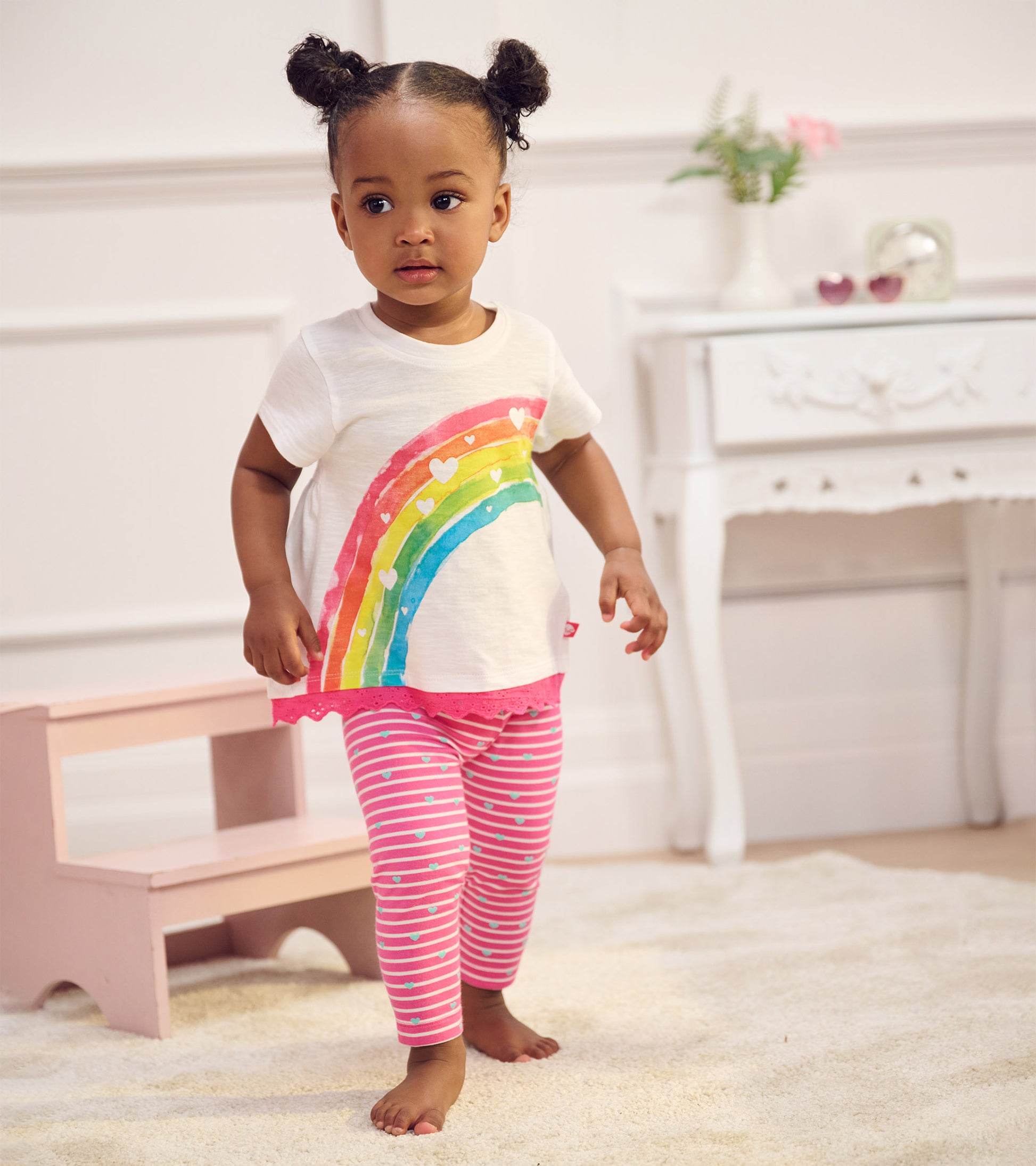 T-shirt à bordure à œillets pour bébé et bambin – Arc-en-ciel