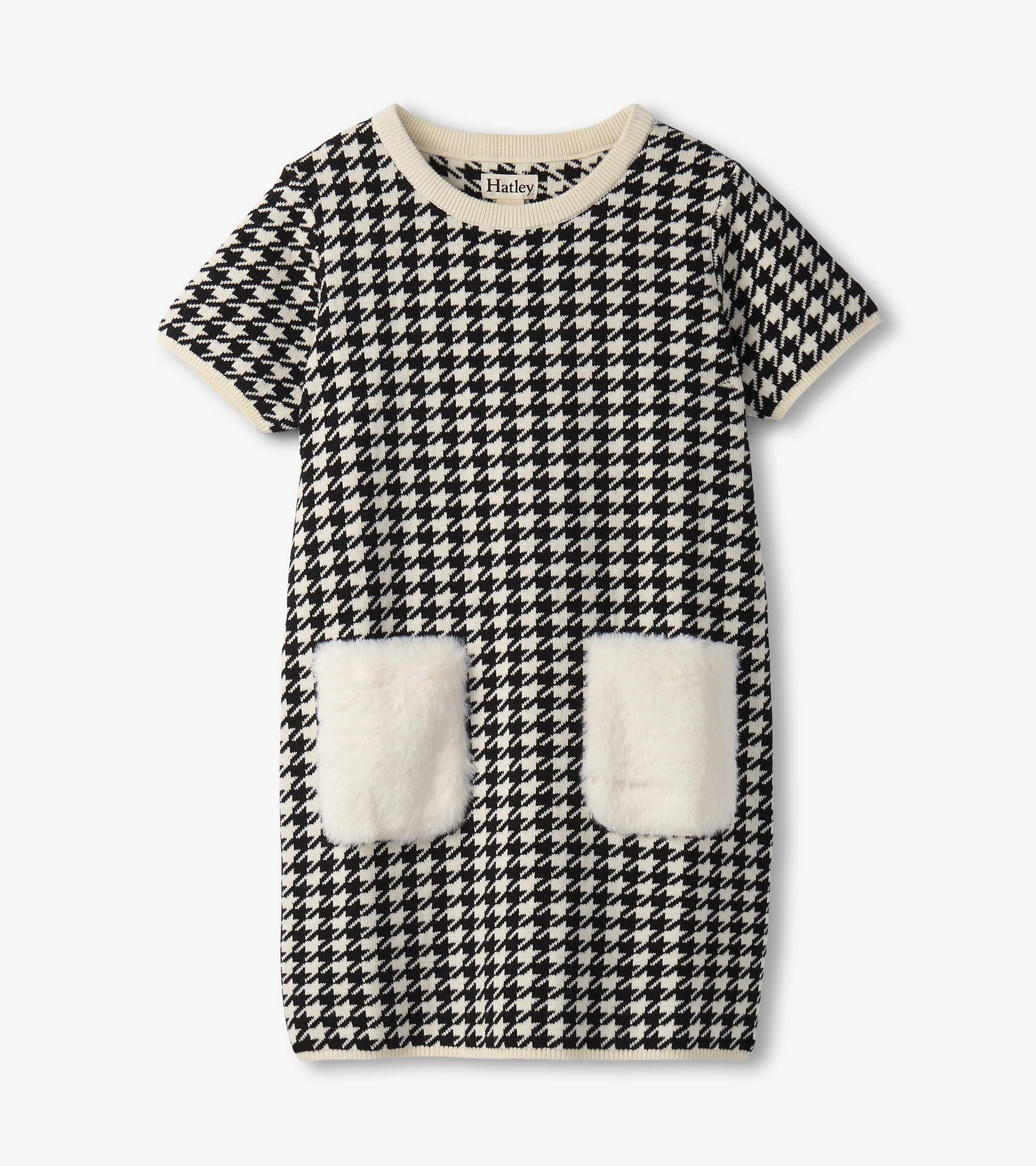 Robe-pull dotée de poches en fausse fourrure – Pied-de-poule