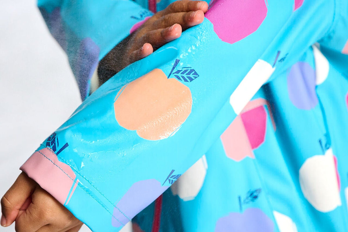 Les imperméables Hatley sont fabriqués avec un tissu enduit de PU pour une protection fiable contre la pluie.