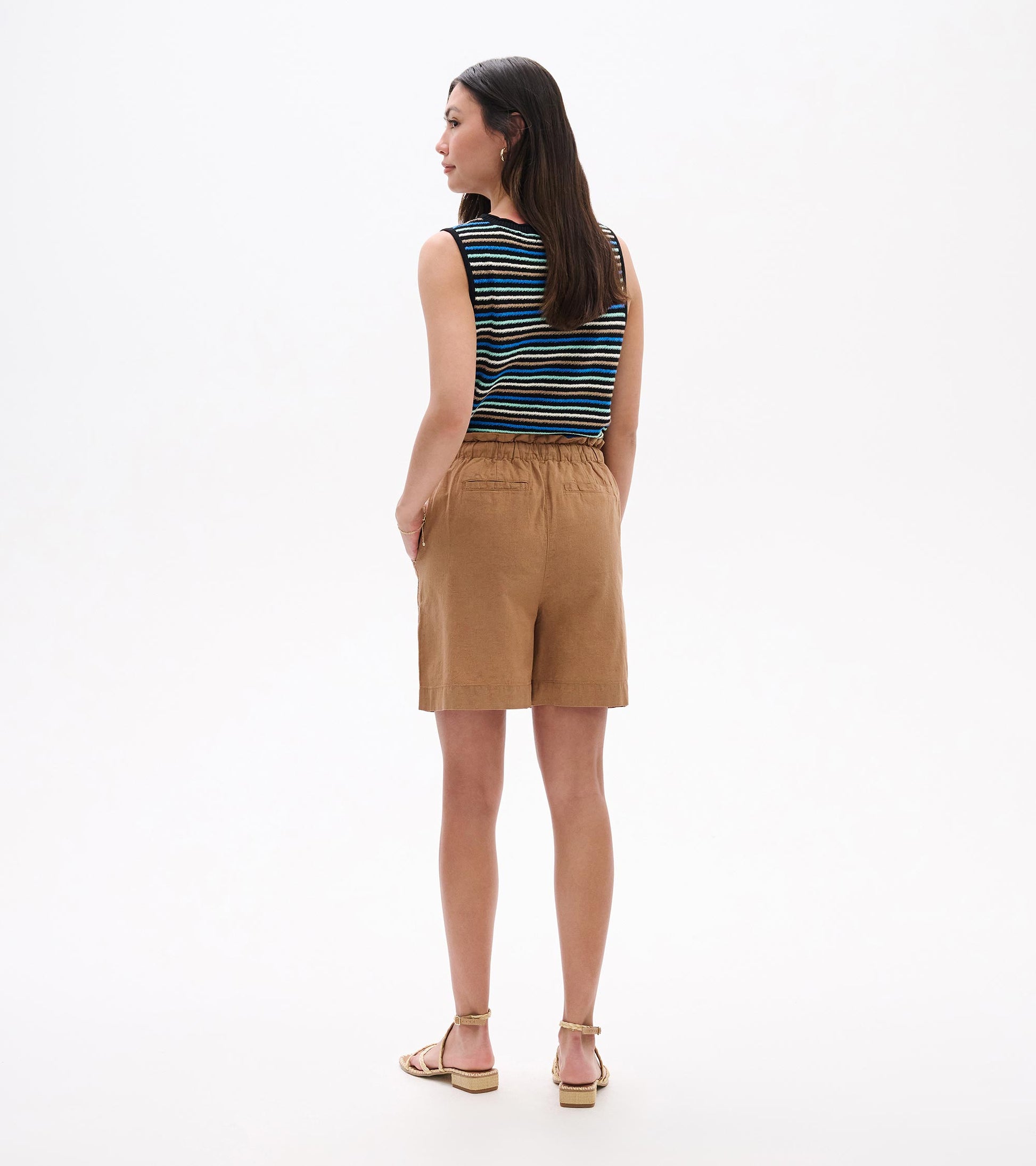 Poches plaquées devant, poches passepoilées dos, liens coulissants