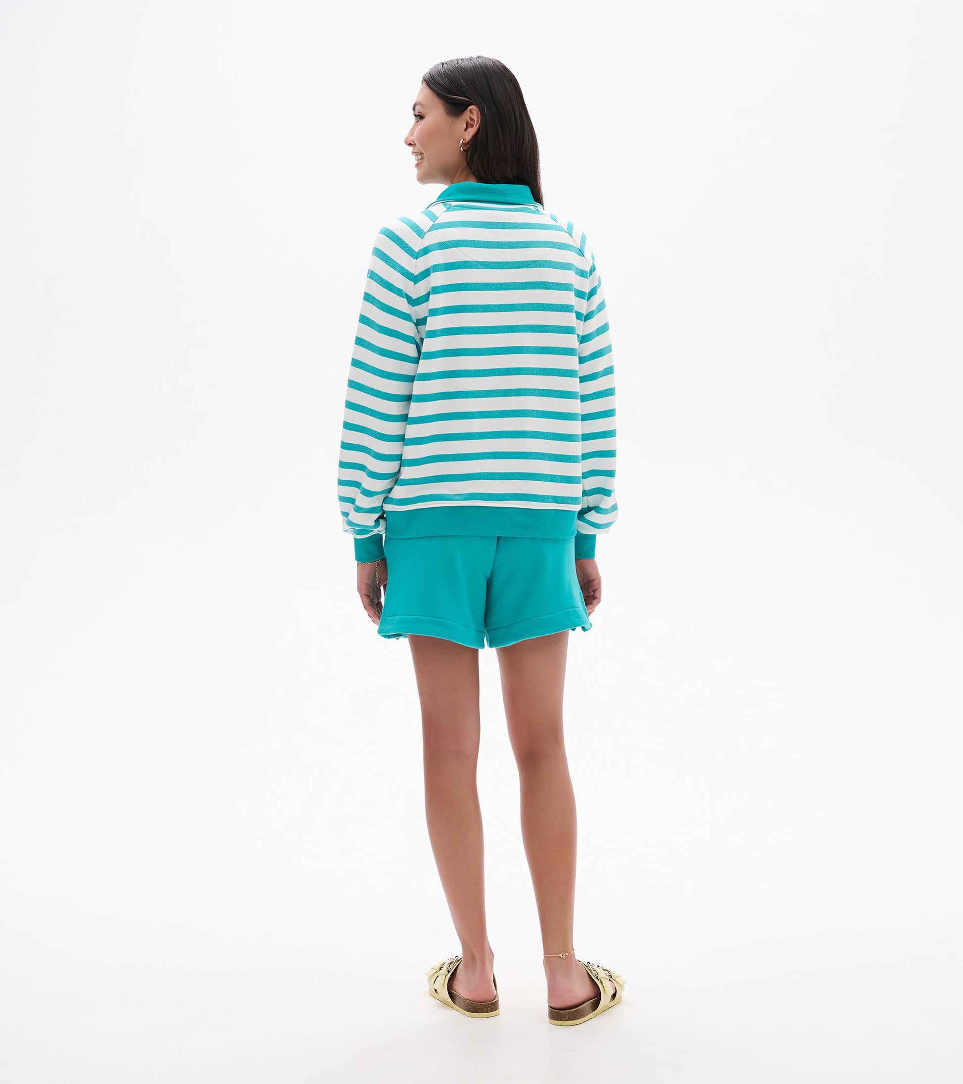 Pull à col montant – Rayures vert céramique