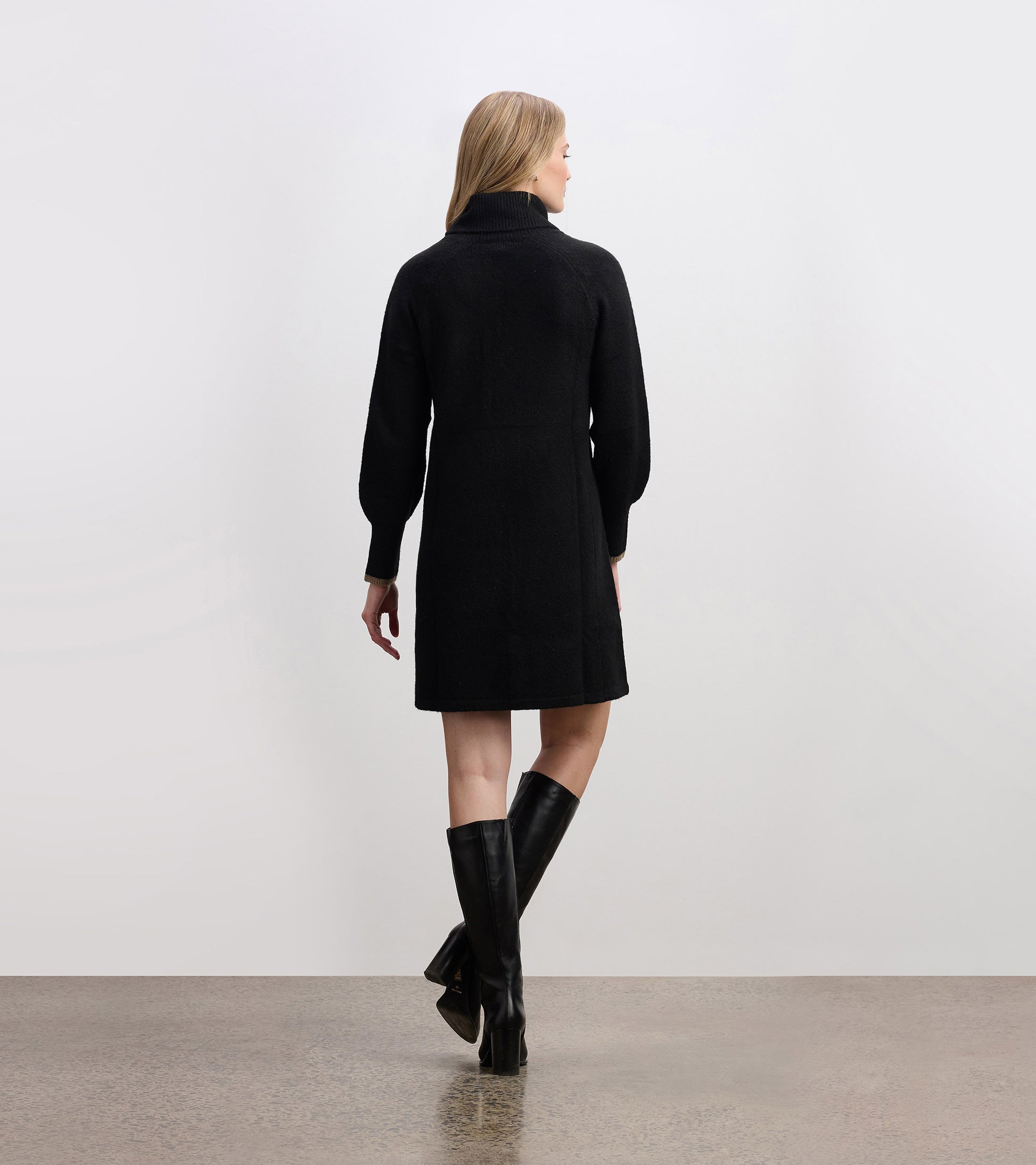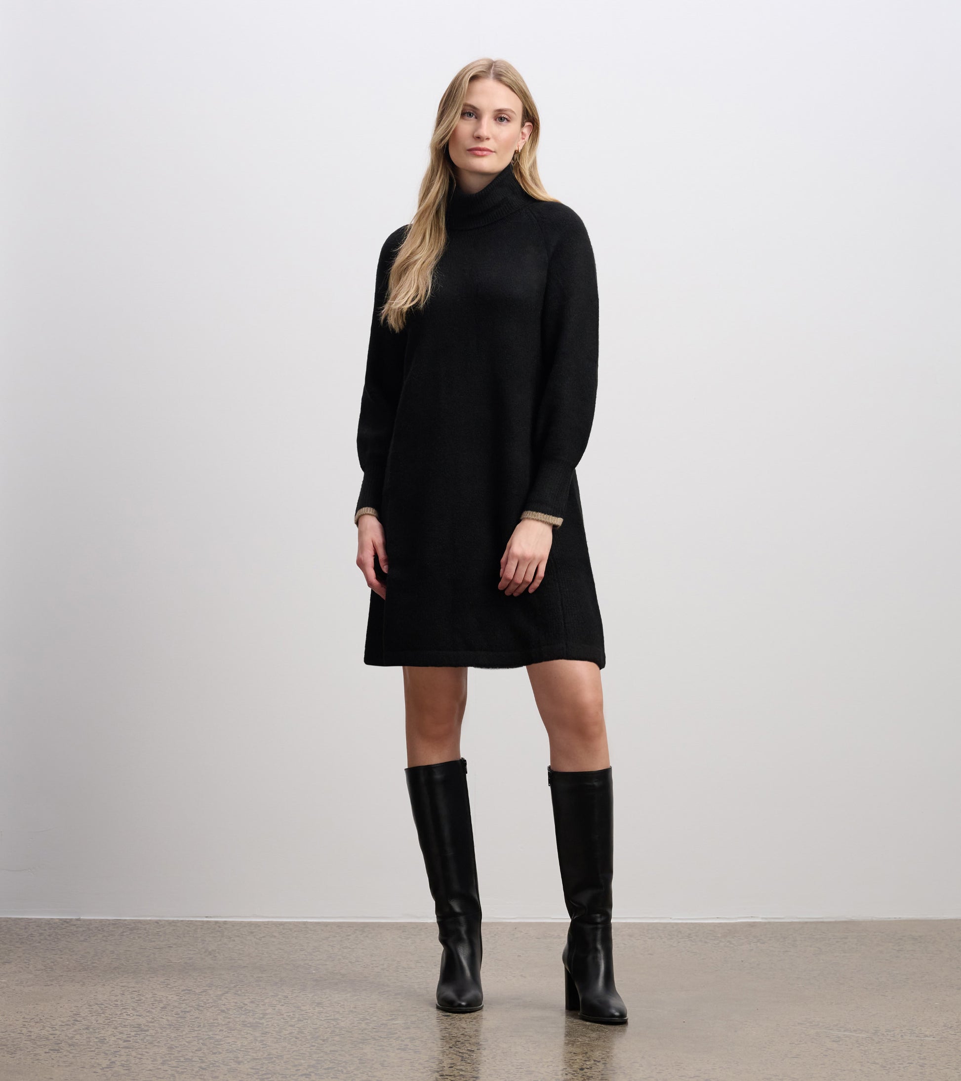 Turtleneck collar, ribbed cuffs, rib trim at hem, seamless side panels for a clean look
