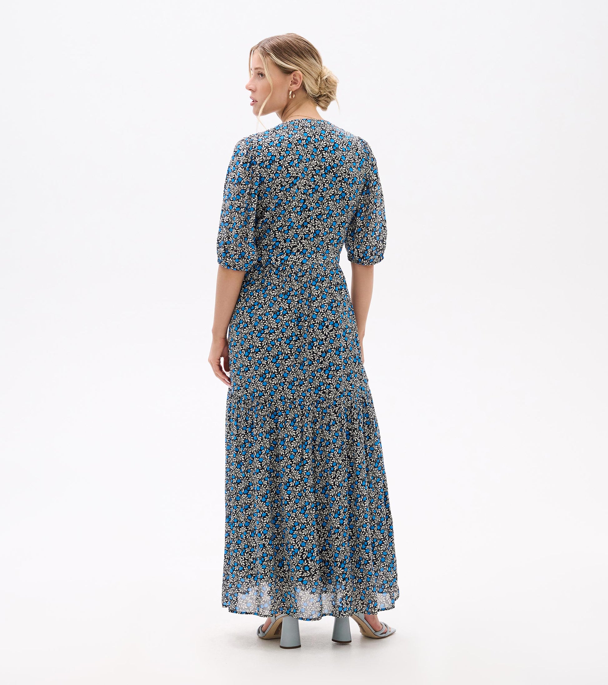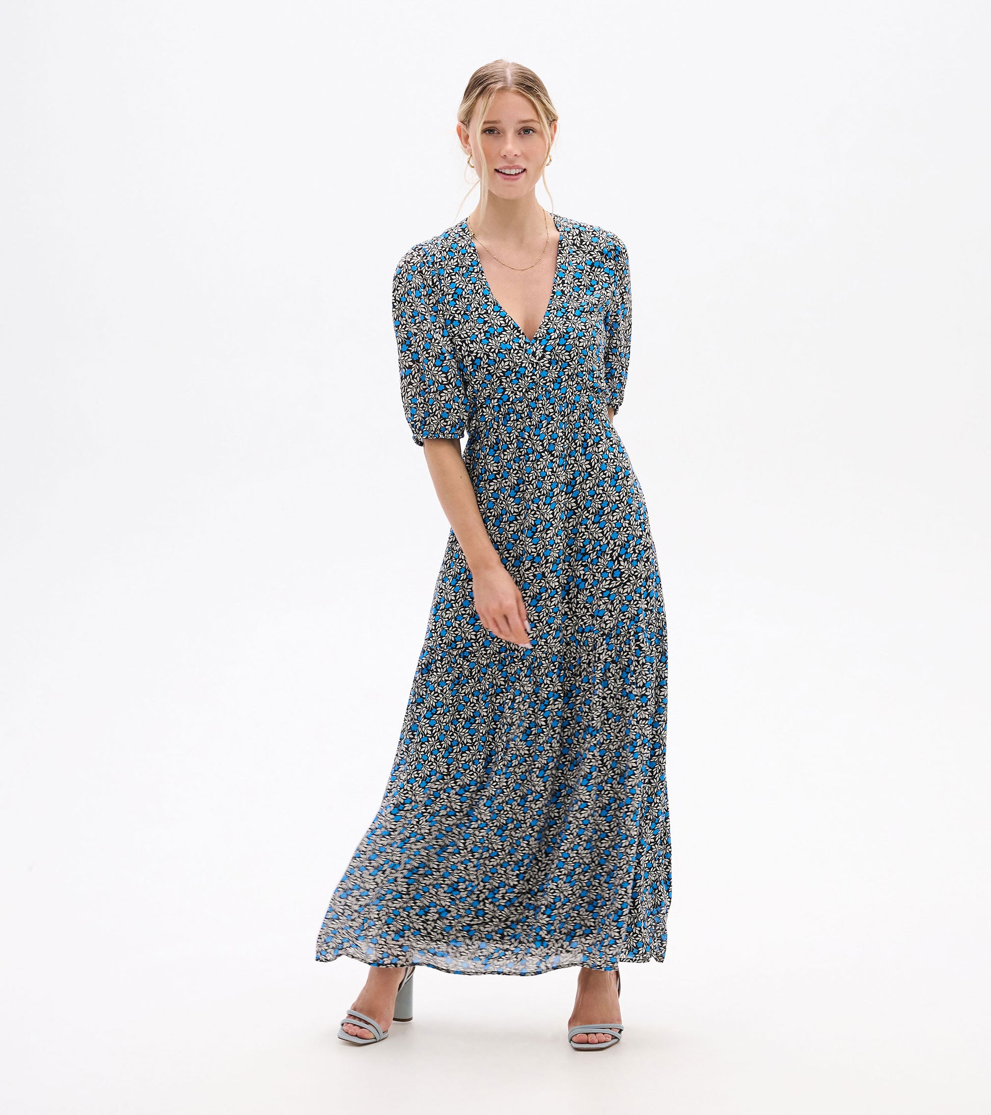 Buste froncé, taille plissée, fermeture éclair latérale invisible, doublée