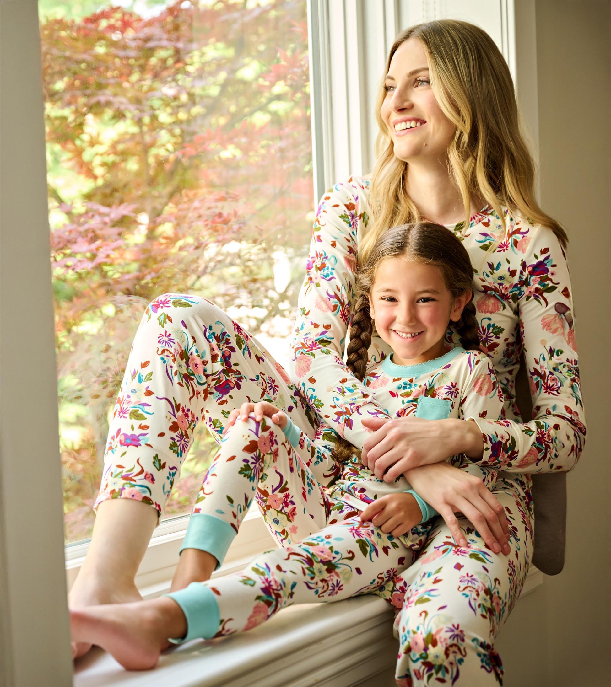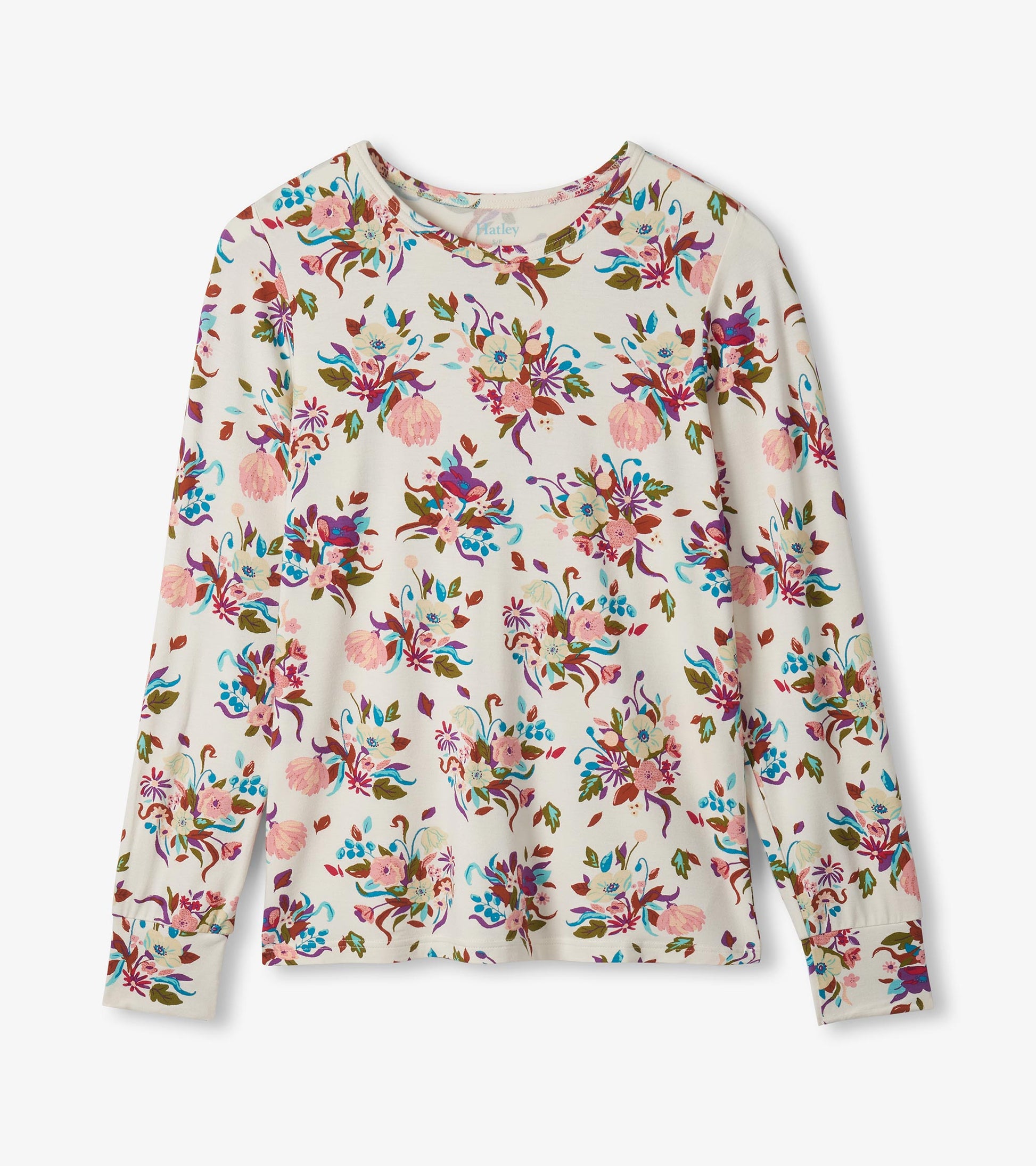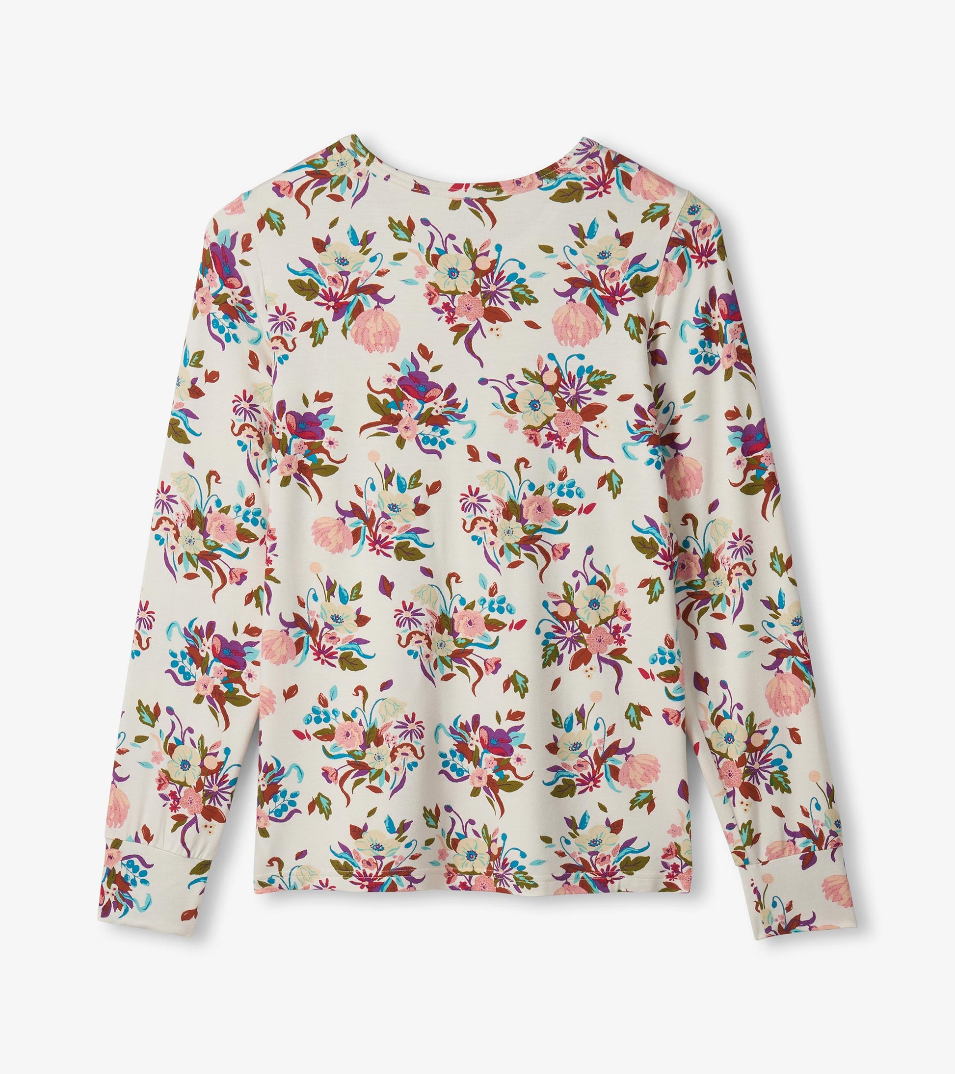 Pyjama en bambou pour femme – Fleurs d’automne sur fond naturel