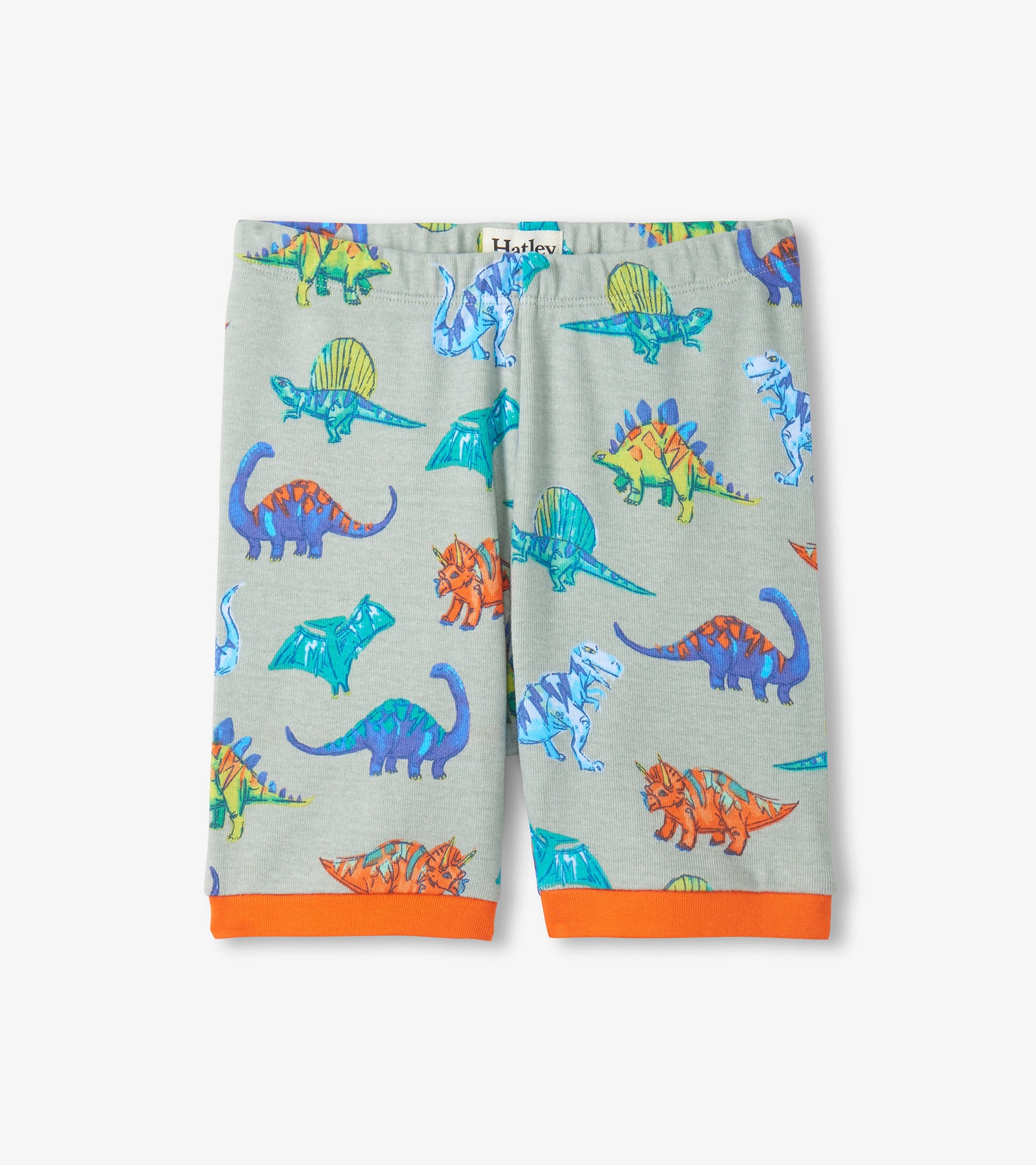 Prehistoric fun continues at bedtime in this dinosaur short pajama set from organically grown cotton. The certified organic construction offers pure, chemical-free softness for comfortable sleep. A thoughtful comfort panel provides room for movement during warm nights. Snug fit meets sleepwear safety standards while contrast trim adds detail. Perfect organic sleepwear for little paleontologists.