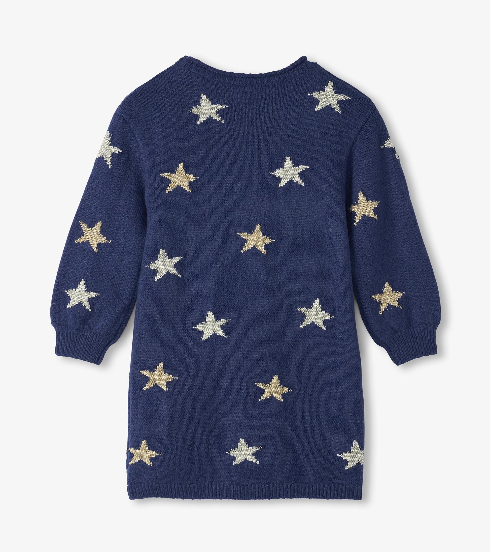 Add some twinkle to her wardrobe with the Girls Blue Starlight Sweater Dress. This dress, made from a cozy blend of acrylic, cotton, and nylon, features a beautiful starlight pattern that will make her feel like a star.