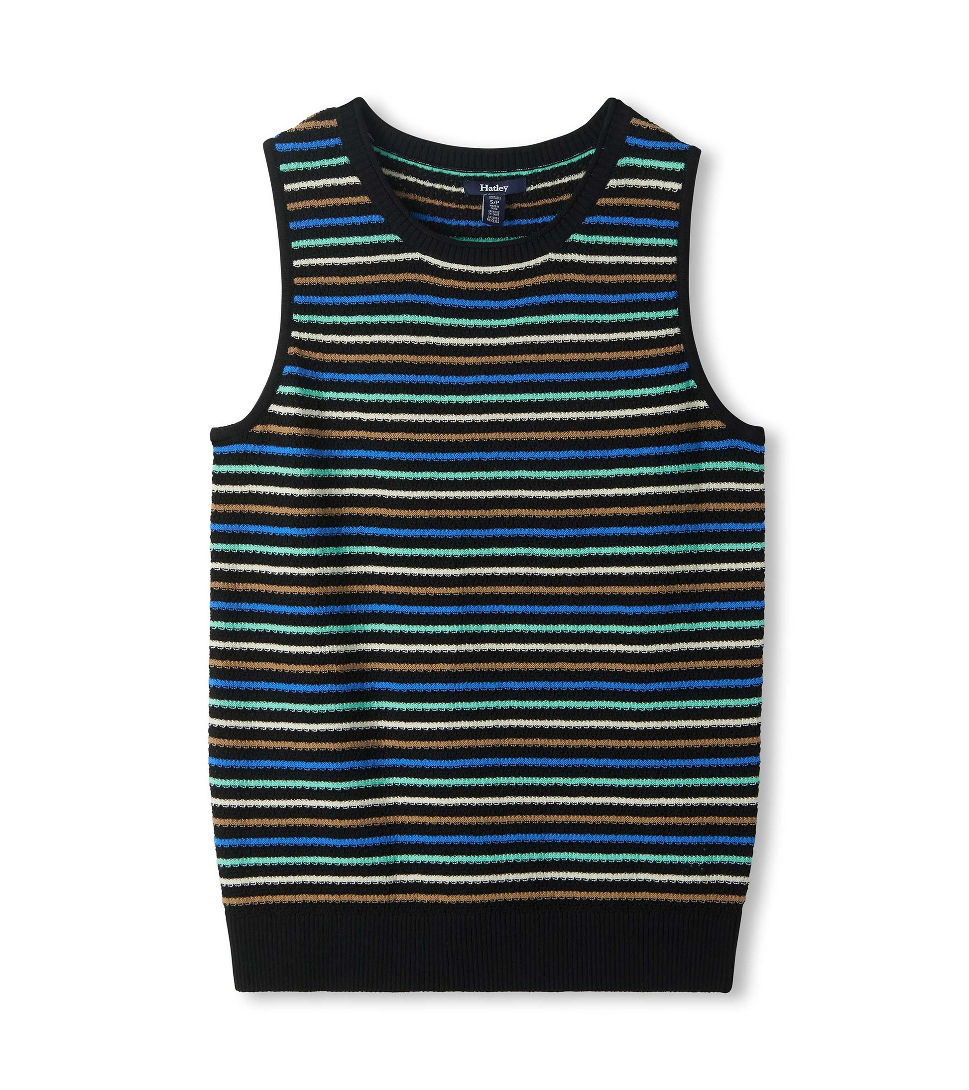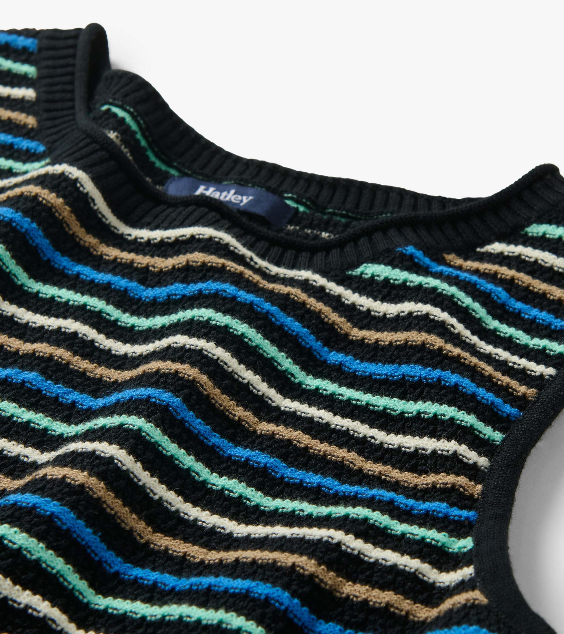 Warm desert stripe tones and intricate textured knitting elevate this sleeveless cotton tank beyond basic layering. The decorative openwork pattern adds artisanal charm, while the naturally rolled neckline creates effortless style. Seamless armhole finishing ensures comfortable wear under jackets or alone on warmer days. A unique piece that brings crafted character to your spring wardrobe.