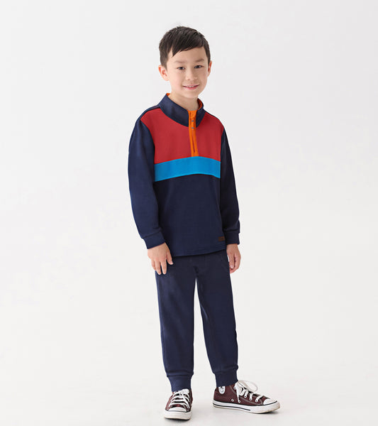 Boys Navy Colour Block Fleece 1/4 Zip Mockneck