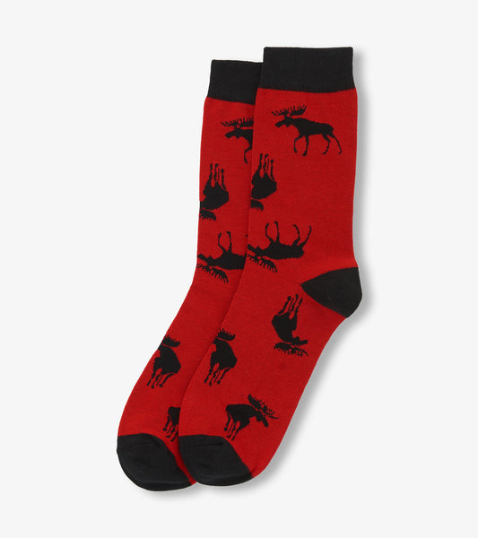 Moose on Red Men's Crew Socks